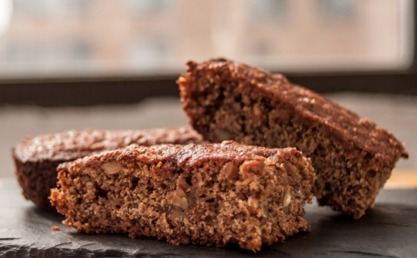 - Pour batter into a well-buttered loaf or cake pan. Bake one hour. Let cool. Enjoy!