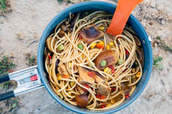 2. At camp: Place the contents of the vegetable & spices bag in a pot with 3-4 cups water and bring to a boil. Simmer until the mushrooms and veggies are just tender, about 5 minutes.