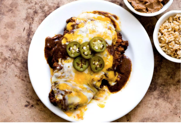 7. Remove the steaks from the oven. Turn on the broiler, position a rack 6 inches from the heating element, and place each steak on an oven-proof plate. Evenly pour over the steaks the gravy, then top with the cheese. Slide the plates under the broiler (depending on the size of your oven, you may need to do this in batches), and cook until the cheese has melted, about 1-2 minutes. Garnish the steaks with pickled jalapeños. Serve immediately, with refried beans and rice, if you like.