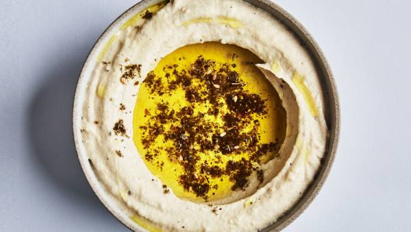 Transfer hummus to a shallow bowl, top with za’atar, and drizzle with more oil.