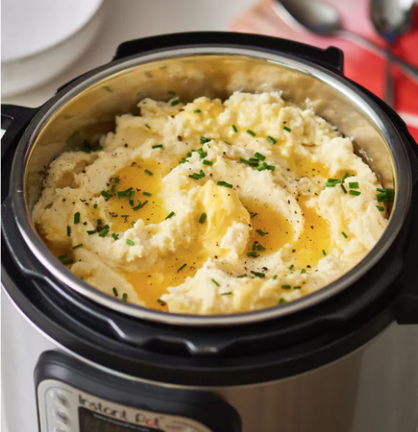 - To keep the mashed potatoes warm, wash the insert of the pressure cooker to remove cooking starch. Return the insert to the pressure cooker and coat the bottom and sides of the insert with the butter. Add the half-and-half or milk. Spoon in the warm mashed potatoes but don't stir. Cover with a glass lid or pressure cooker lid. If using the pressure cooker lid, be sure to turn the sealing valve to open. Turn on the “keep warm” setting. Gently stir the potatoes every 20 to 30 minutes to prevent them from sticking to the pot.