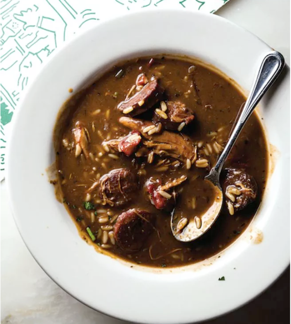 - Heat butter in an 8-qt. saucepan over medium-high heat. Whisk in flour; cook, stirring, to make a dark roux, 18-20 minutes.