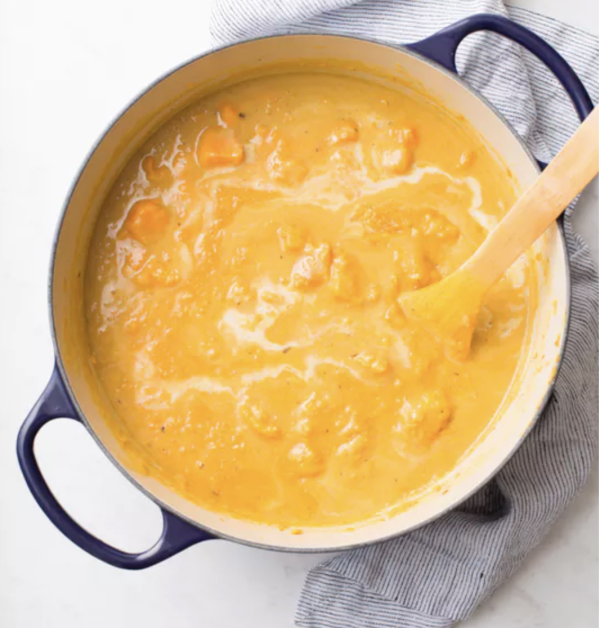 4. Stir in the coconut milk. Purée with an immersion blender or blender until smooth, allowing the soup to cool slightly first if using a traditional blender. Taste and season with salt as needed. Add a cup of water to thin if needed.