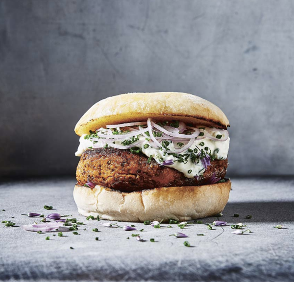 - Put a patty at the bottom of each bun, splash on some horseradish sour cream and top with shallots and chives.